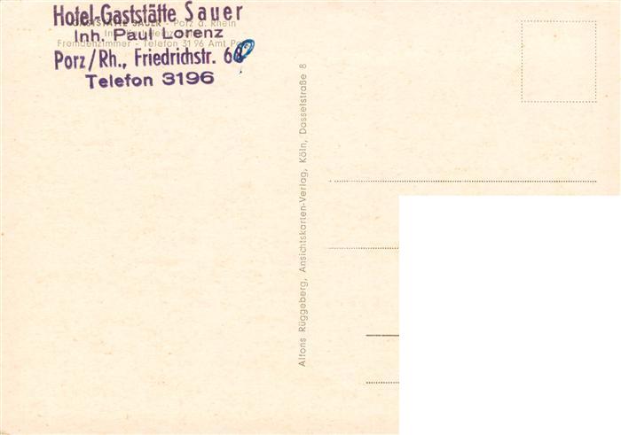 73869366 Porz Koeln Rhein Hotel Gaststaette Sauer Gaststube postalisch nicht gelaufen Erhaltung siehe scans [FriedD77] Frie Katcode 11110005315000