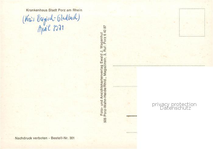 73865080 Porz Koeln Rhein Krankenhaus postalisch nicht gelaufen Erhaltung siehe scans [FriedD77] Frie Katcode 11110005315000