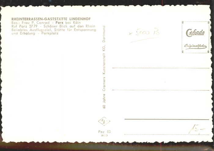 41397950 Porz Koeln Rheinterrassen-Gaststätte Lindenhof Terrasse P.Conrad KatCode 11110005315000