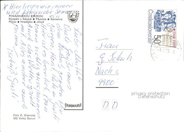 old postcard Posazavskou Stezkou Flussbad postalisch gelaufen Erhaltung siehe scans