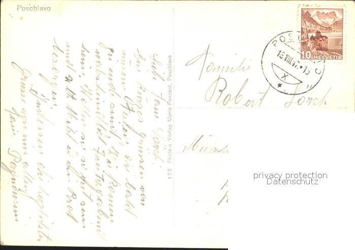 11635715 alte Postkarte Poschiavo Gesamtansicht mit Alpenpanorama postalisch gelaufen Erhaltung siehe scans KatCode: 11470100310008