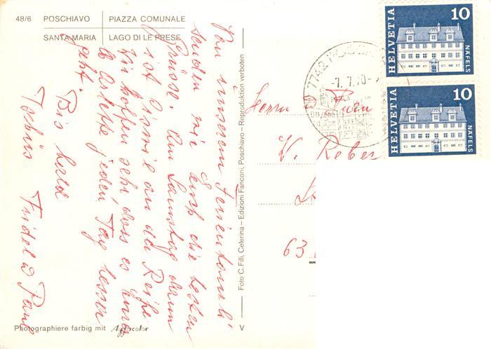 13901628 alte Postkarte Poschiavo GR Piazza Comunale Santa Maria Lago di le Prese postalisch gelaufen Erhaltung siehe scans [WerneD78] KatCode: 11470100310008