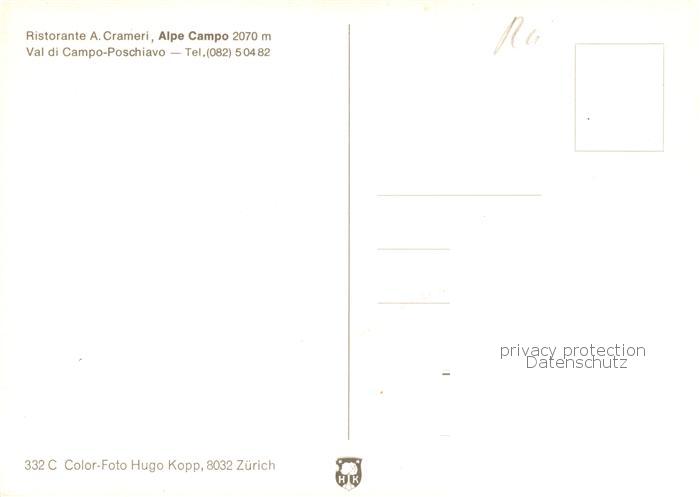 13869402 Poschiavo GR Ristorante Crameri Alpe Campo postalisch nicht gelaufen Erhaltung siehe scans [WerneD78] KatCode: 11470100310008