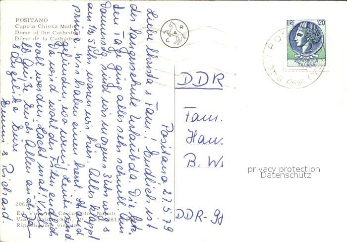 old postcard Positano Cupola Chiesa Madre postalisch gelaufen Erhaltung siehe scans