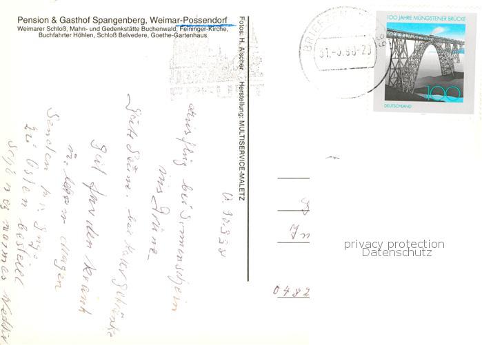 73791276 alte Postkarte Possendorf Weimar Weimarer Schloss Mahn und Gedenkstaette Feininger Kirche Buchfahrter Hoehlen Schloss Belvedere Goethe Gartenhaus postalisch gelaufen Erhaltung siehe scans [WerneD78] KatCode: 11110016055000