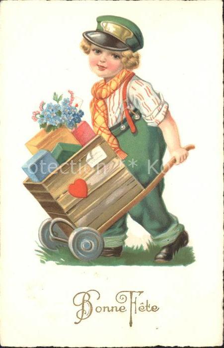 11854891 Postbote Brieftraeger Schubkarre Pakete Vergissmeinicht KatCode 22060000006400