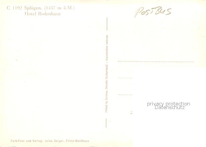 73890837 Postbus Omnibus Spluegen Hotel Bodenhaus postalisch nicht gelaufen Erhaltung siehe scans [IrynaD87] KatCode: 22060000006100