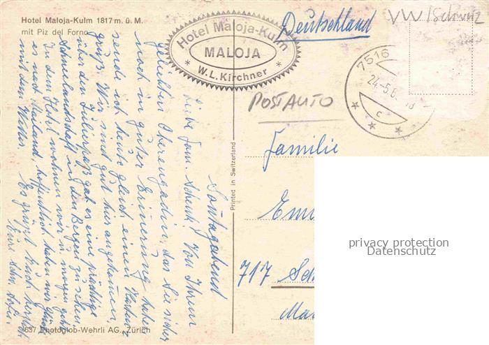 74077247 alte Postkarte Postbus Postauto Omnibus Hotel Maloja Kulm Piz del Forno postalisch gelaufen Erhaltung siehe scans [IrynaD87] KatCode: 22060000006100
