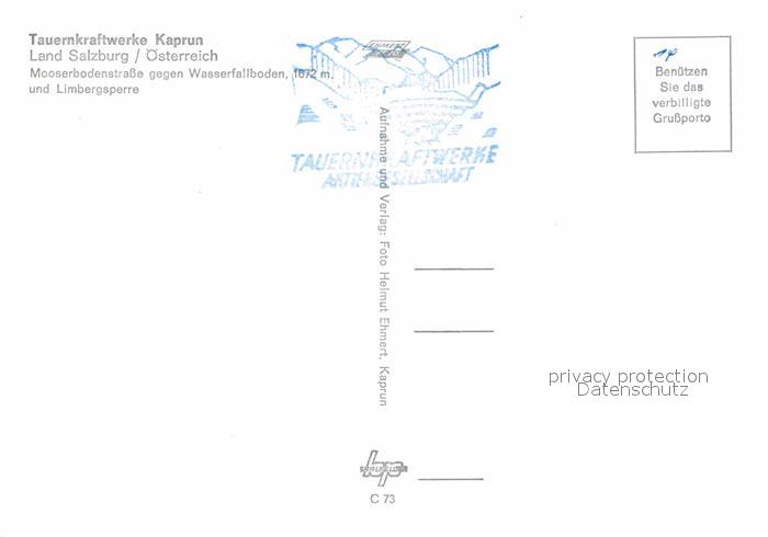 72883012 Postbus Tauernkraftwerke Kaprun Mooserbodenstrasse Wasserfallboden Limbergsperre KatCode 22060000006100