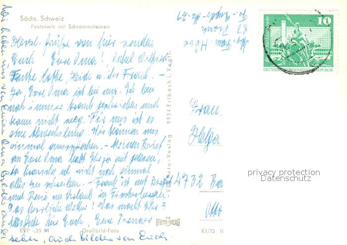 73071175 alte Postkarte Postelwitz Schrammsteine postalisch gelaufen Erhaltung siehe scans [NatalD47] KatCode: 11110014287020