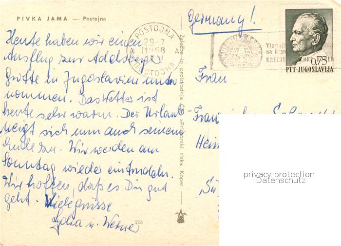 old postcard Postojna Pivka Jama postalisch gelaufen Erhaltung siehe scans [WerneD78]