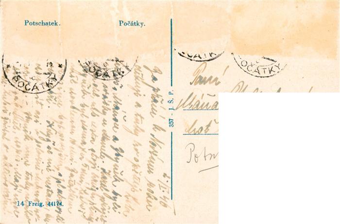 73959670 old postcard Potschatek Pocatky Jindrichuv Hradec Neuhaus Boehmen CZ Uferpartie am Wasser postalisch gelaufen Erhaltung siehe scans [FriedD77] KatCode: 11520