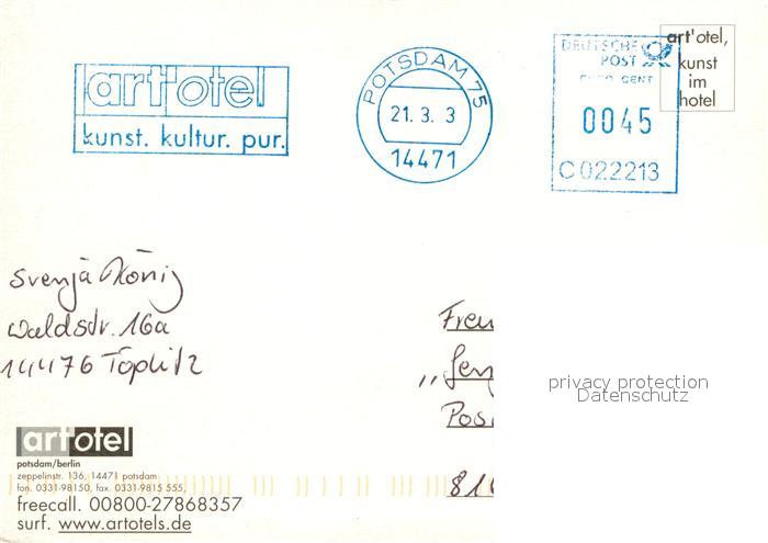 73637884 alte Postkarte Potsdam artotel Hotel Motorboot Palast postalisch gelaufen Erhaltung siehe scans [FriedD77] KatCode: 11110012054000