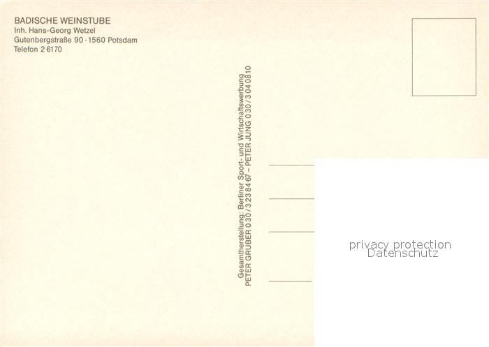 73660517 Potsdam Badische Weinstube postalisch nicht gelaufen Erhaltung siehe scans [FriedD77] KatCode: 11110012054000