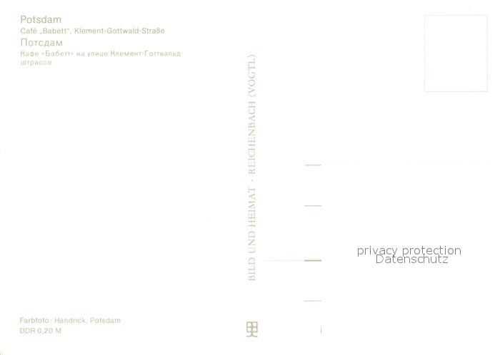73166818 Potsdam Cafe Babett Clement Gottwald Strasse postalisch nicht gelaufen Erhaltung siehe scans [KathaD81] KatCode: 11110012054000