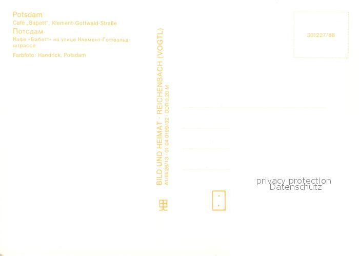 73166830 Potsdam Cafe Babett Klement Gottwald Strasse postalisch nicht gelaufen Erhaltung siehe scans [KathaD81] KatCode: 11110012054000