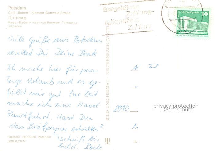 73103946 alte Postkarte Potsdam Cafe Babett Klement Gottwald Strasse postalisch gelaufen Erhaltung siehe scans [WerneD78] KatCode: 11110012054000