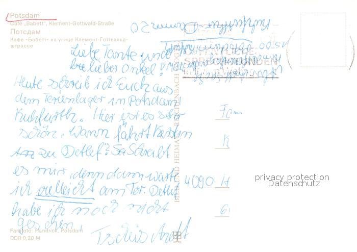 73088702 alte Postkarte Potsdam Cafe Babett Klement Gottwald Strasse postalisch gelaufen Erhaltung siehe scans [KathaD81] KatCode: 11110012054000
