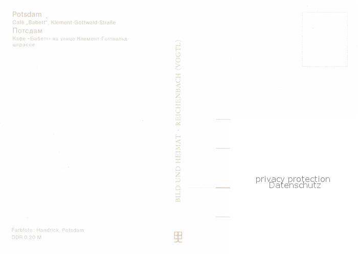 72636217 Potsdam Cafe Babett Klement Gottwald Strasse postalisch nicht gelaufen Erhaltung siehe scans [WerneD78] KatCode: 11110012054000