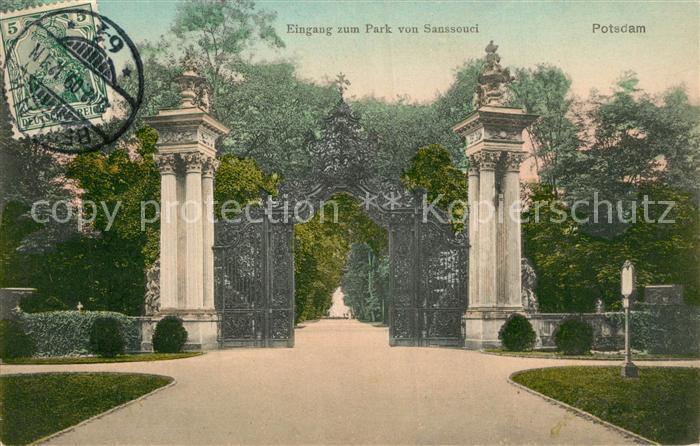 43491469 POTSDAM CITY Eingang zum Park von Sanssouci postalisch gelaufen Erhaltung siehe scans [LiesaD40] alte Postkarte Lies Katcode 11110012054000