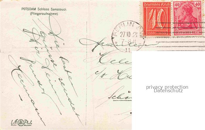 34145404 POTSDAM CITY Schloss Sanssouci postalisch gelaufen Fliegeraufnahme Erhaltung siehe scans [FriedD77] Fliegeraufnahme alte Postkarte Frie Katcode 11110012054000