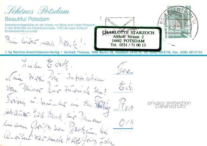 72929660 alte Postkarte Potsdam Dampferanlegestelle Hotel Potsdam postalisch gelaufen Erhaltung siehe scans [KathaD81] KatCode: 11110012054000