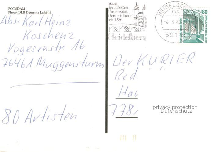 72931551 alte Postkarte Potsdam Fliegeraufnahme postalisch gelaufen Erhaltung siehe scans [KathaD81] KatCode: 11110012054000