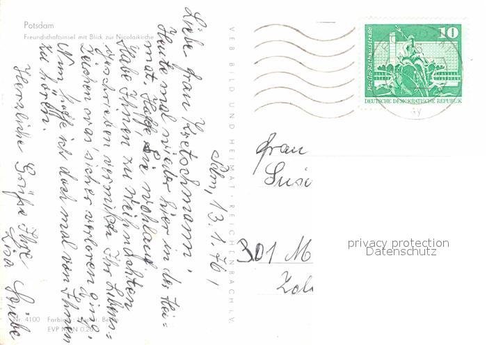 72624742 alte Postkarte Potsdam Freundschaftsinsel Nikolaikirche postalisch gelaufen Erhaltung siehe scans [WerneD78] KatCode: 11110012054000