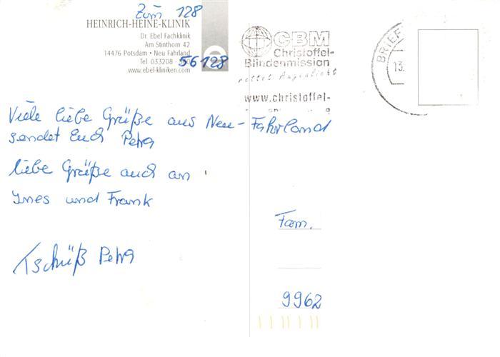 73882659 Potsdam Heinrich Heine Klinik Terrasse Foyer Appartement postalisch nicht gelaufen Erhaltung siehe scans [WerneD78] KatCode: 11110012054000