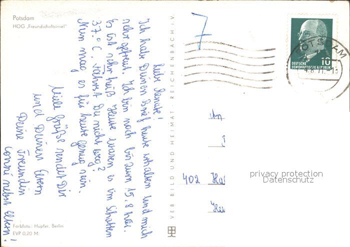 72533606 alte Postkarte Potsdam HOG Freundschaftsinsel Gaststaette Terrasse postalisch gelaufen Erhaltung siehe scans [FriedD77 kt118box] KatCode: 11110012054000