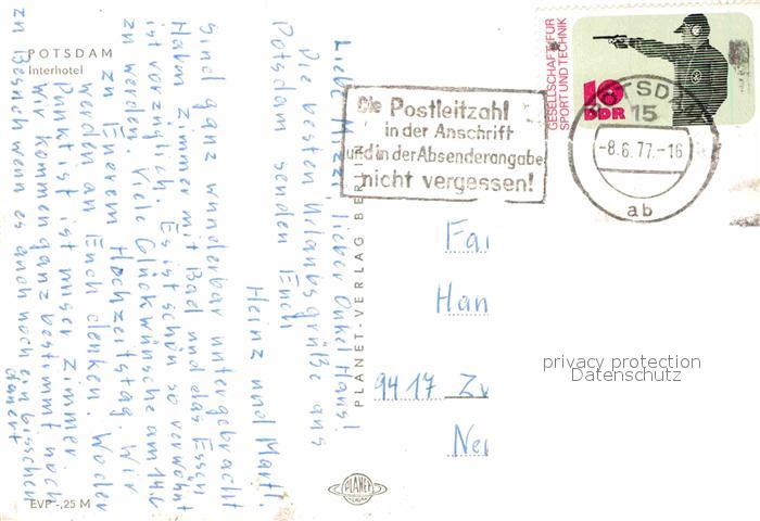 72729393 alte Postkarte Potsdam Interhotel postalisch gelaufen Erhaltung siehe scans [LiesaD40] KatCode: 11110012054000