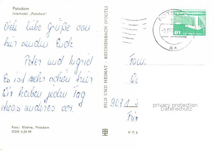 72704874 alte Postkarte Potsdam Interhotel postalisch gelaufen Erhaltung siehe scans [AndreD76] KatCode: 11110012054000