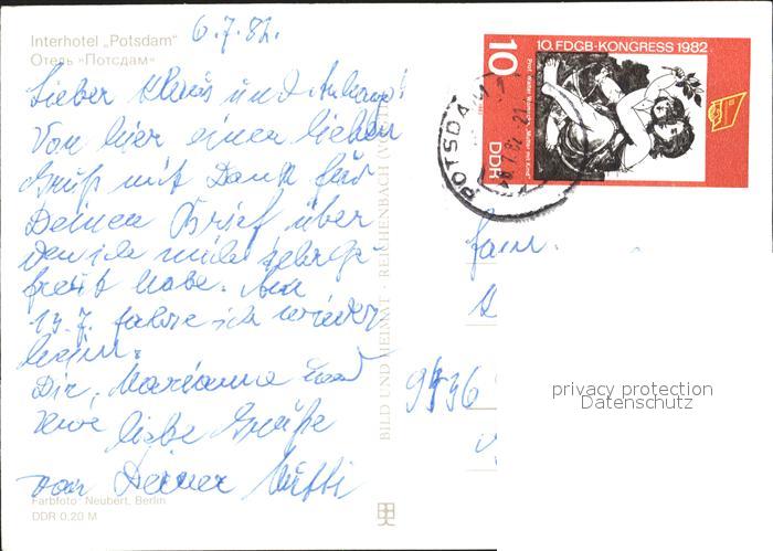 72328078 alte Postkarte Potsdam Interhotel postalisch gelaufen Erhaltung siehe scans KatCode: 11110012054000