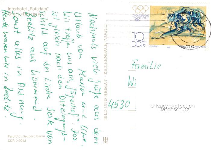 72947019 alte Postkarte Potsdam Interhotel postalisch gelaufen Erhaltung siehe scans [LiesaD40] KatCode: 11110012054000
