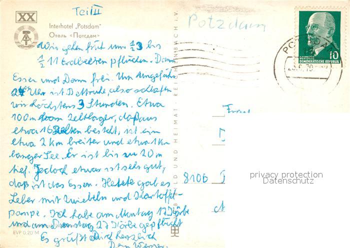 73103940 alte Postkarte Potsdam Interhotel Potsdam postalisch gelaufen Erhaltung siehe scans [WerneD78] KatCode: 11110012054000