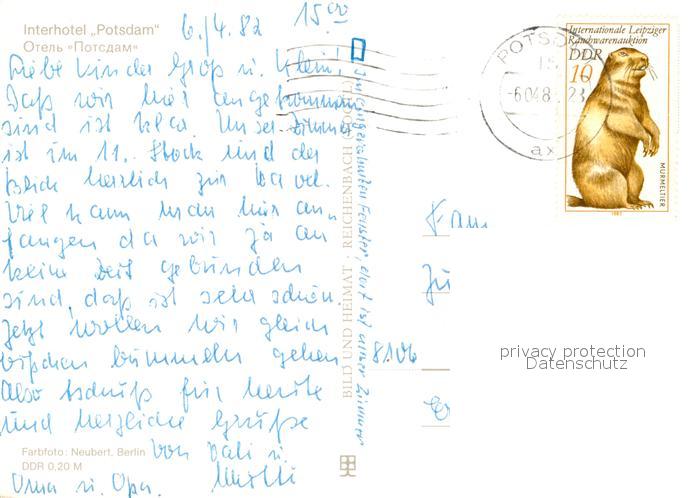 73090186 alte Postkarte Potsdam Interhotel Potsdam postalisch gelaufen Erhaltung siehe scans [PaolaD17] KatCode: 11110012054000