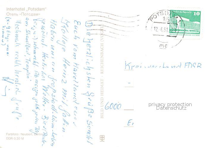 72974138 alte Postkarte Potsdam Interhotel Potsdam postalisch gelaufen Erhaltung siehe scans [PaolaD17] KatCode: 11110012054000