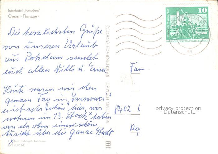 72590774 alte Postkarte Potsdam Interhotel Potsdam postalisch gelaufen Erhaltung siehe scans [WerneD78] KatCode: 11110012054000