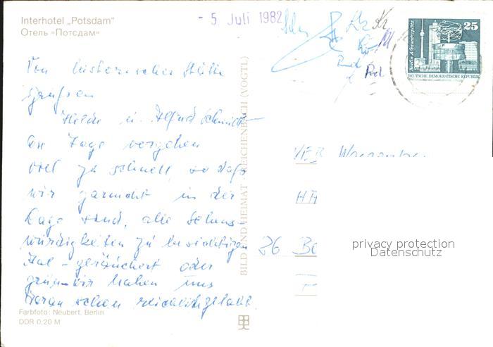 72496295 alte Postkarte Potsdam Interhotel Potsdam postalisch gelaufen Erhaltung siehe scans KatCode: 11110012054000