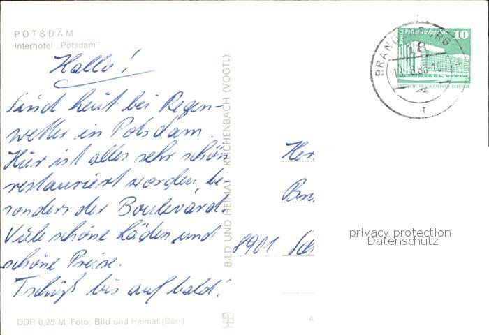 72476659 alte Postkarte Potsdam Interhotel Potsdam postalisch gelaufen Erhaltung siehe scans KatCode: 11110012054000