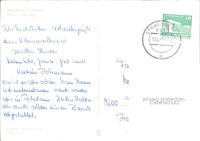 72321633 alte Postkarte Potsdam Interhotel Potsdam postalisch gelaufen Erhaltung siehe scans KatCode: 11110012054000