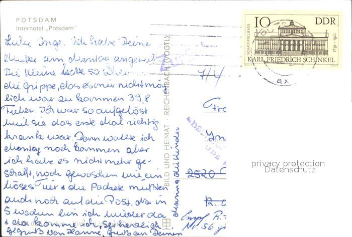 72074600 alte Postkarte Potsdam Interhotel Potsdam postalisch gelaufen Erhaltung siehe scans KatCode: 11110012054000