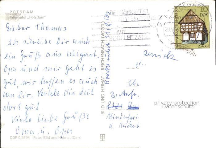 72056308 alte Postkarte Potsdam Interhotel Potsdam postalisch gelaufen Erhaltung siehe scans KatCode: 11110012054000
