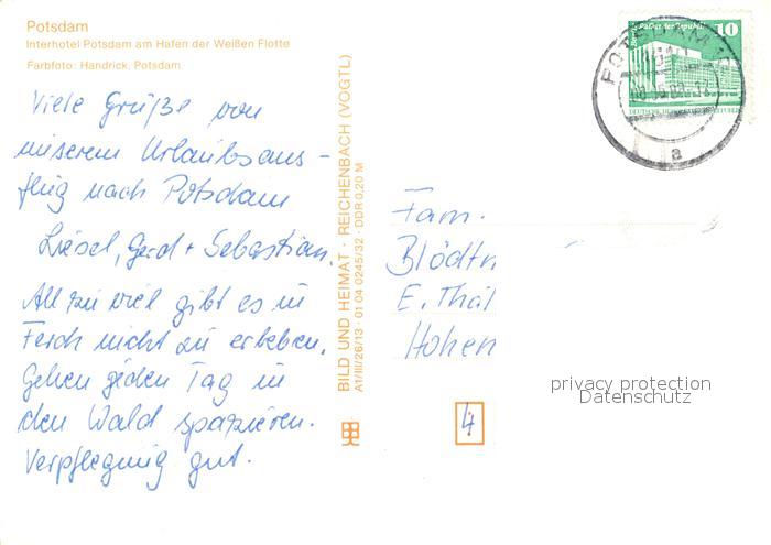 73152688 alte Postkarte Potsdam Interhotel Potsdam am Hafen der Weissen Flotte postalisch gelaufen Erhaltung siehe scans [FriedD77] KatCode: 11110012054000