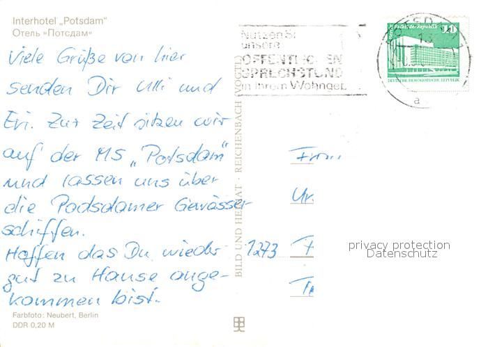 73159225 alte Postkarte Potsdam Interhotel Potsdam Fahrgastschiff postalisch gelaufen Erhaltung siehe scans [WerneD78] KatCode: 11110012054000