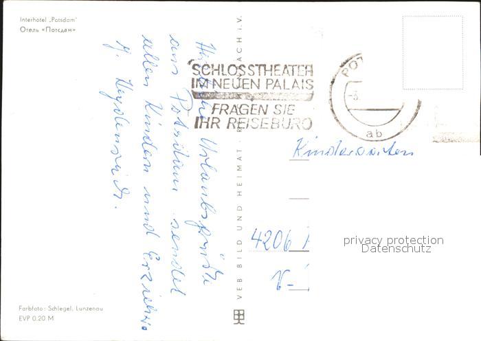 72530606 alte Postkarte Potsdam Interhotel Potsdam Promenade Fahrgastschiff postalisch gelaufen Erhaltung siehe scans [WerneD78 kt116box] KatCode: 11110012054000