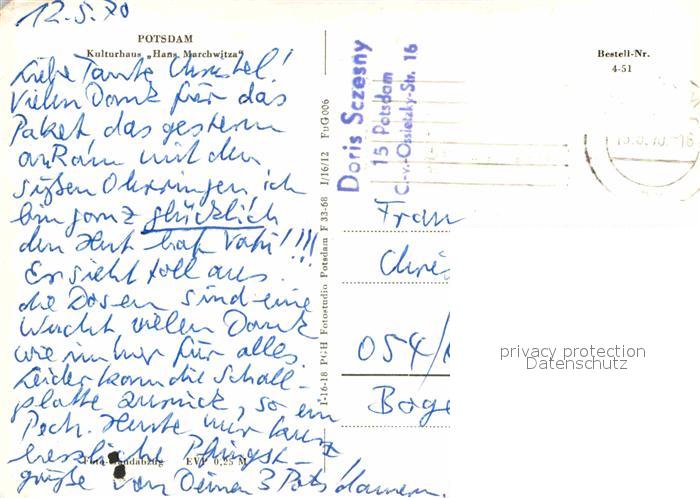 72901208 alte Postkarte Potsdam Kulturhaus Hans Marchwitza postalisch gelaufen Erhaltung siehe scans [PaolaD17] KatCode: 11110012054000