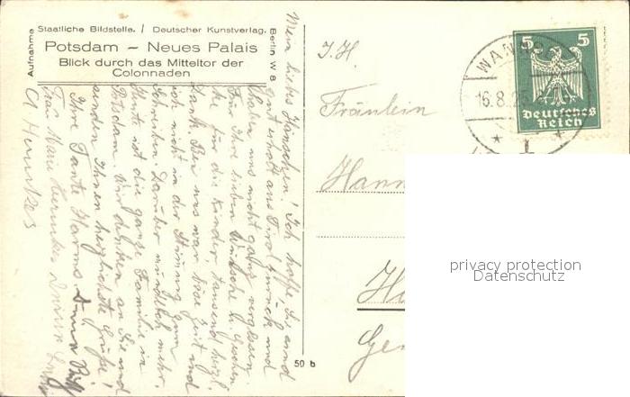 72293398 alte Postkarte Potsdam Neues Palais Mitteltor der Colonnaden postalisch gelaufen Erhaltung siehe scans KatCode: 11110012054000