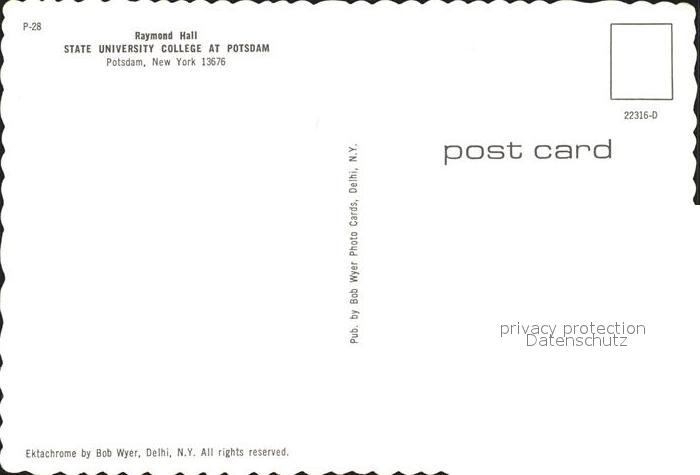 72279624 Potsdam New York Raymond Hall State University College postalisch nicht gelaufen Erhaltung siehe scans KatCode: 14140340000000