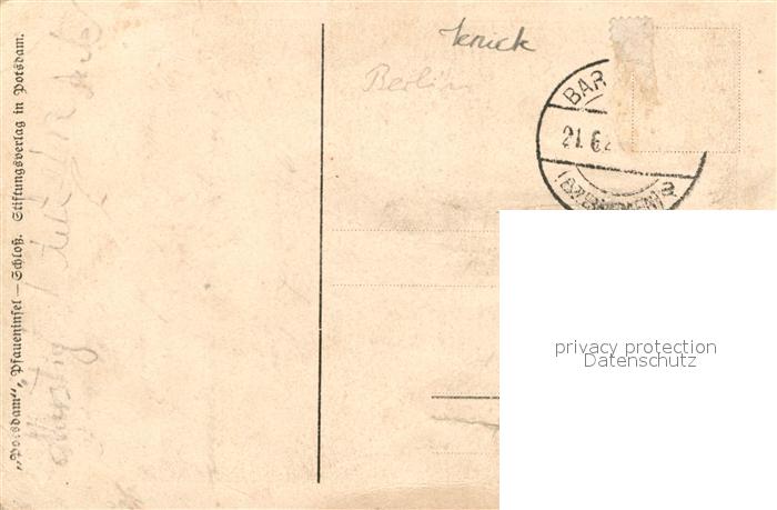 43001358 alte Postkarte Potsdam Pfaueninsel Schloss Kuenstlerkarte postalisch gelaufen Erhaltung siehe scans [FriedD77] KatCode: 11110012054000